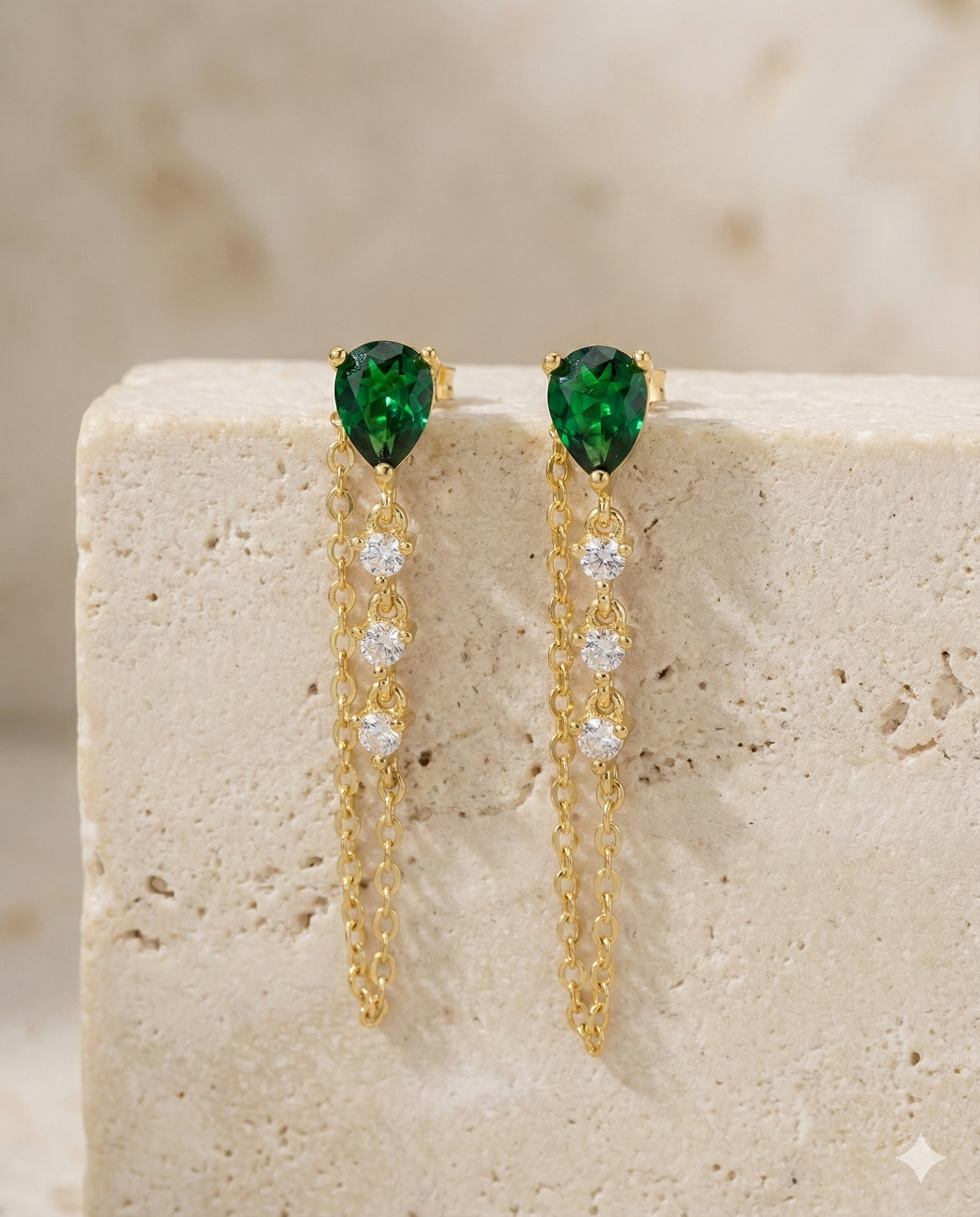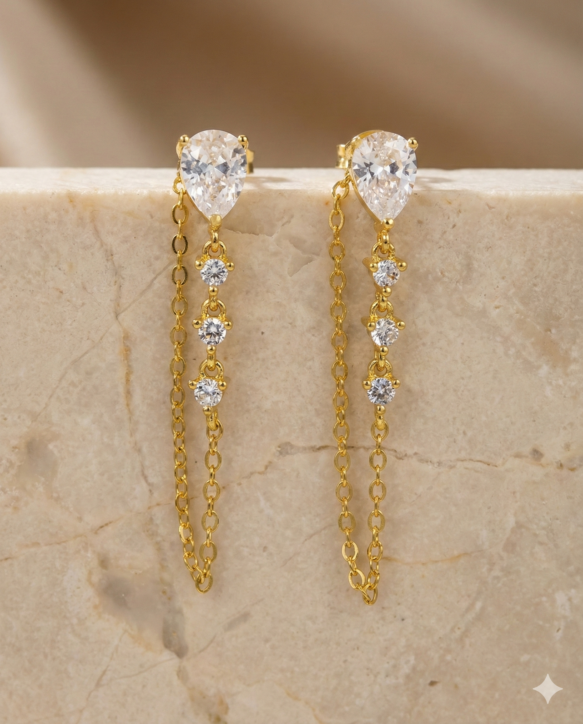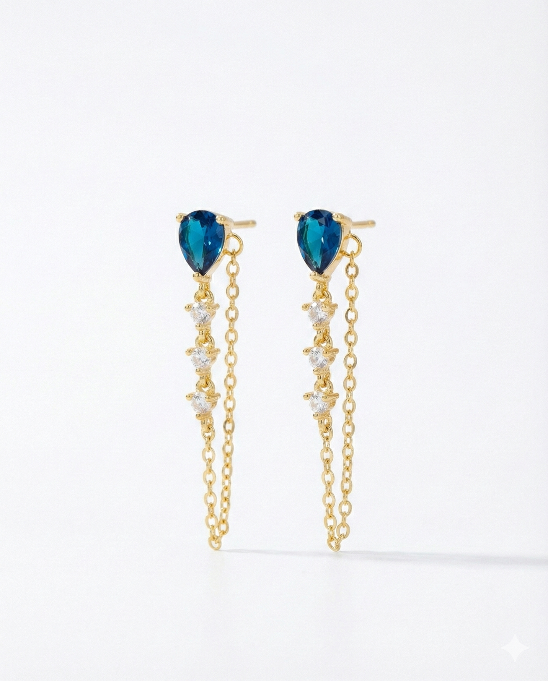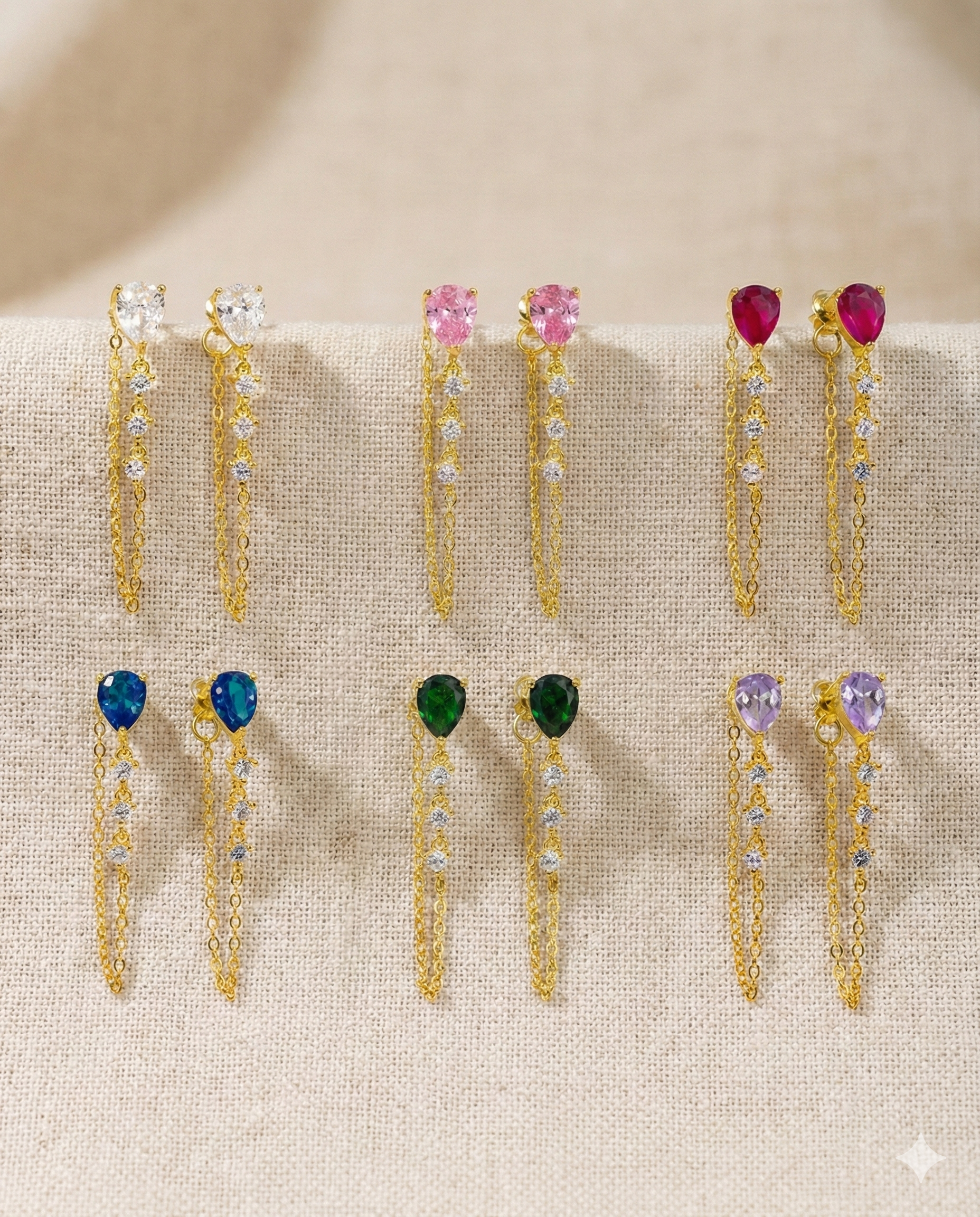 Elevate your look with these Elegant Drop Earrings, crafted in high-quality stainless steel with a refined 18K gold plated finish. Each pair features a delicate geometric stone that adds a touch of color and sophistication, paired with a double-chain drop design that moves beautifully with every step. These earrings are hypoallergenic, water-resistant, durable for daily wear, and designed to never tarnish, turn green, or lose their shine. Perfect for everyday elegance or special occasions, this collection offers multiple color options so you can choose your favorite or build your own set.