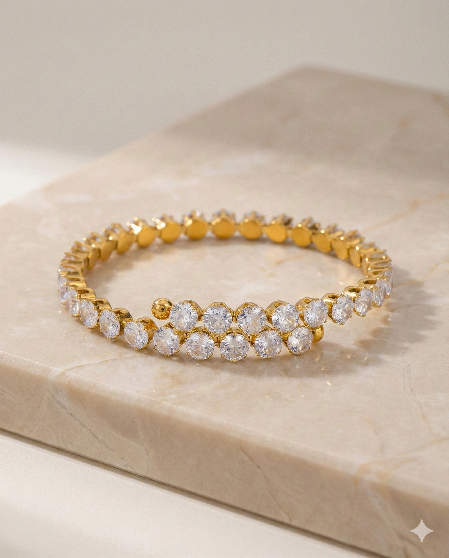 High-quality stainless-steel cuff bracelets with 18K gold plating designed for daily wear. Each piece is lightweight, hypoallergenic, and made to maintain its bright shine — they do not turn black or green. These premium bracelets feature unique crystal designs that add elegance, texture, and sparkle, making them perfect for everyday outfits or special occasions. Durable, comfortable, and versatile, they are ideal for gifting, stacking, or elevating your personal style. Available individually or as a set of three (one of each model).