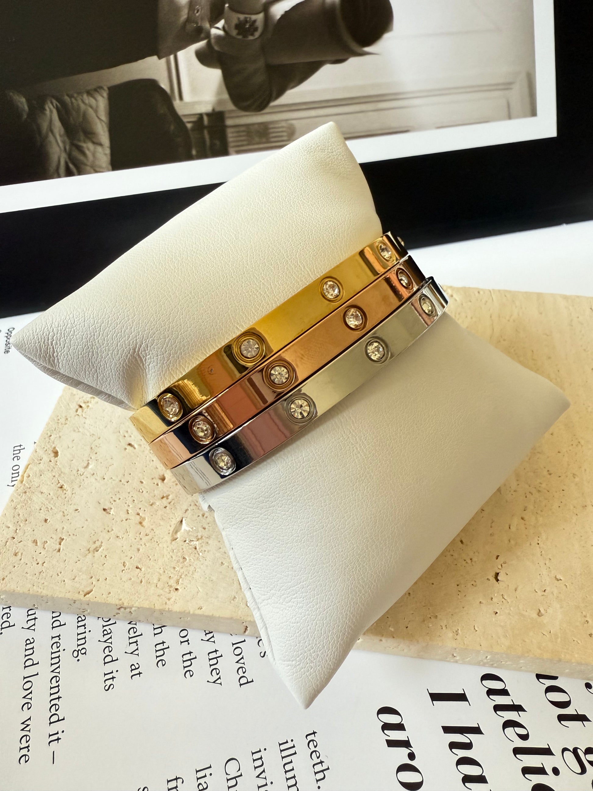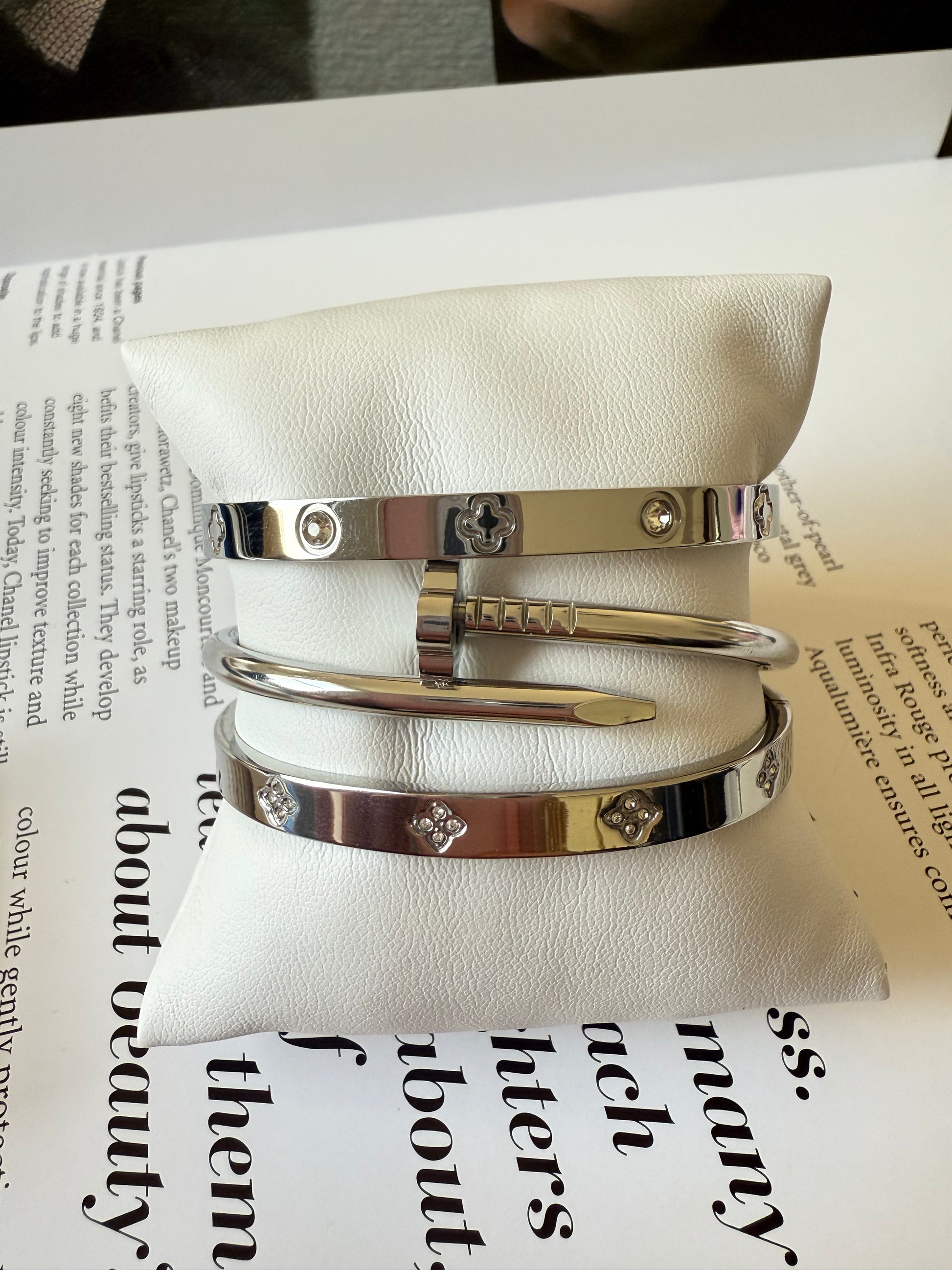 Set especial de 3 brazaletes en acero inoxidable, elegidos por ti según disponibilidad. Diseños modernos, combinables y resistentes para usar todos los días sin preocuparte por que se pongan negros o pierdan el color.